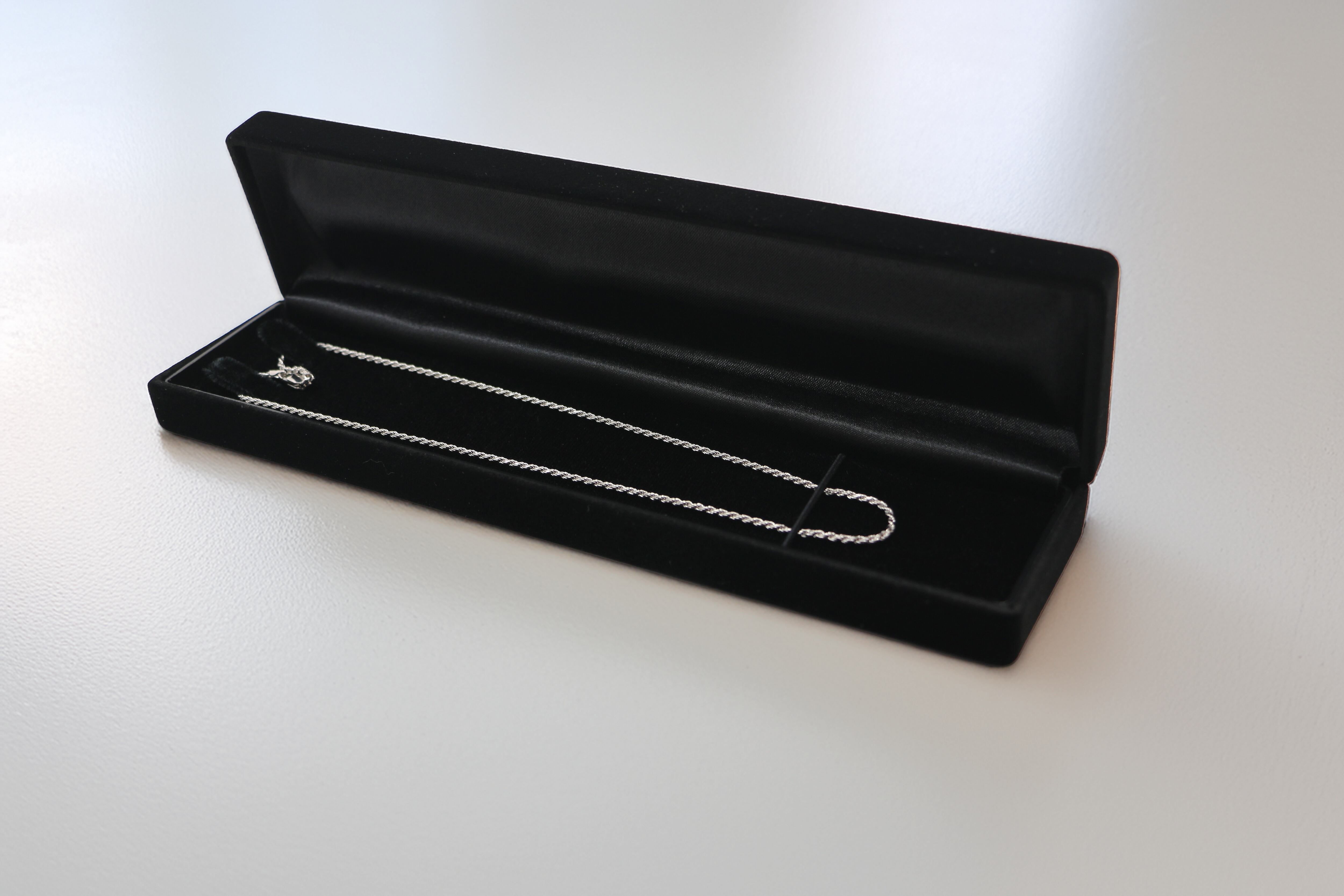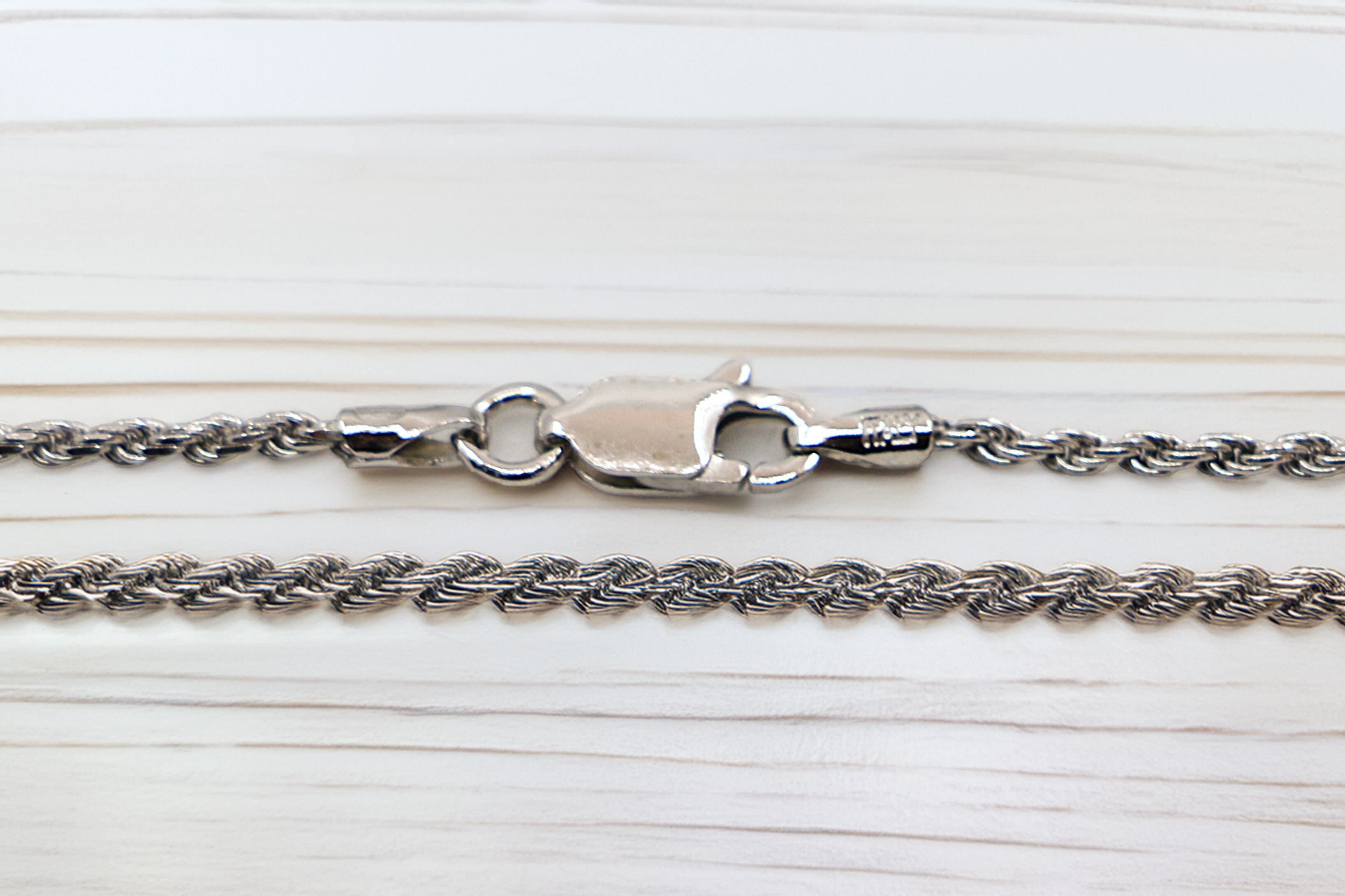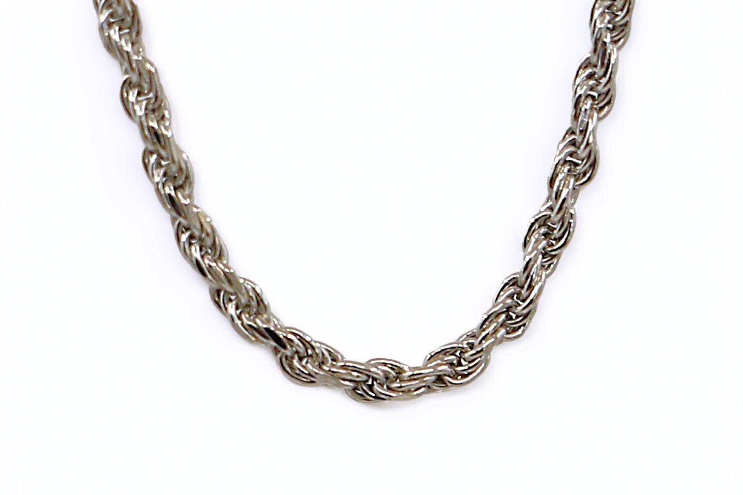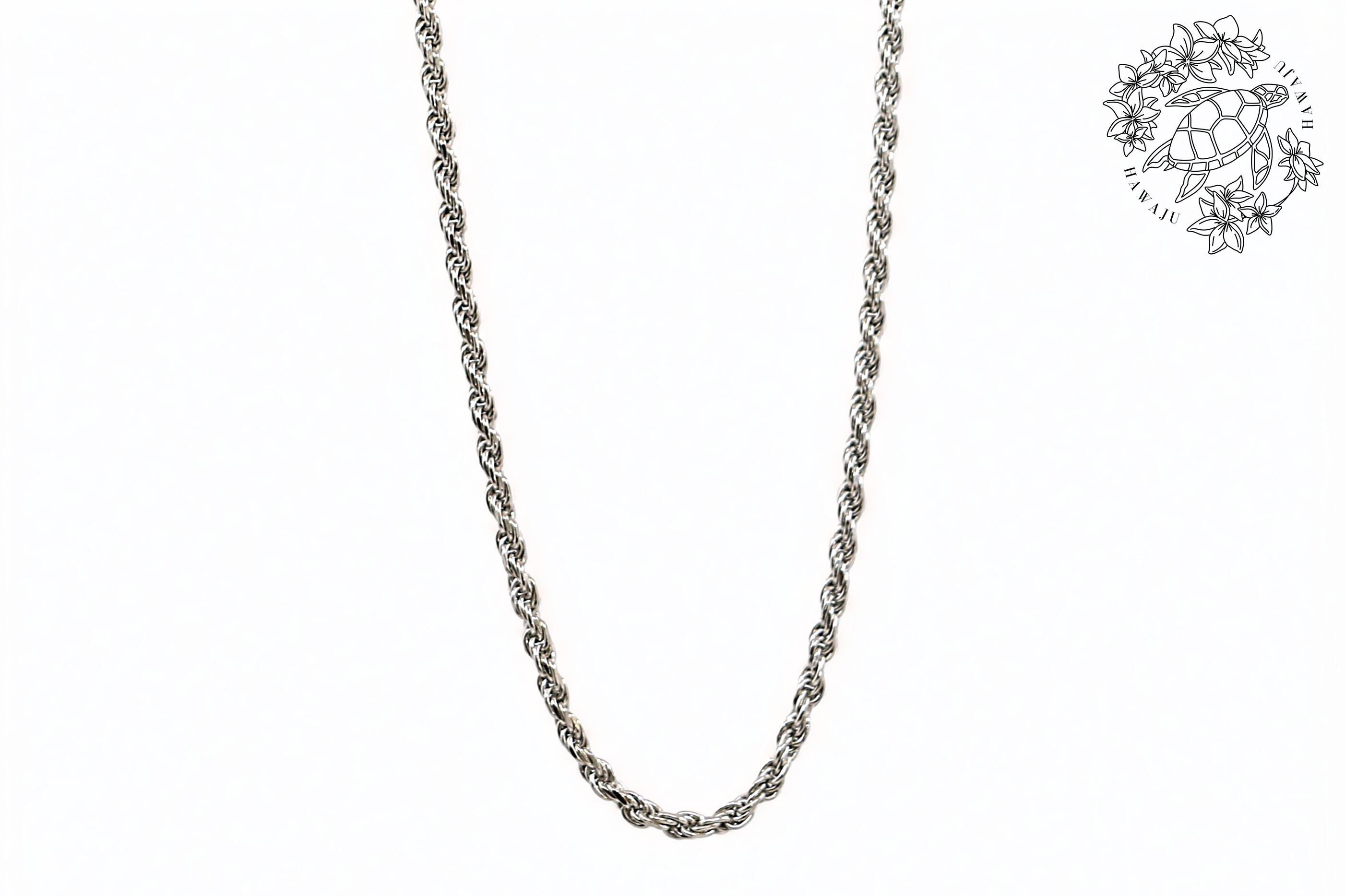 このロープチェーンは、繊細なツイストが美しく輝き、編み込まれたデザインが立体的な光沢を生み出す、シンプルながらも存在感のある仕上がりになっています。一本での着用はもちろん、ペンダントトップとの組み合わせにも最適な万能チェーンです。