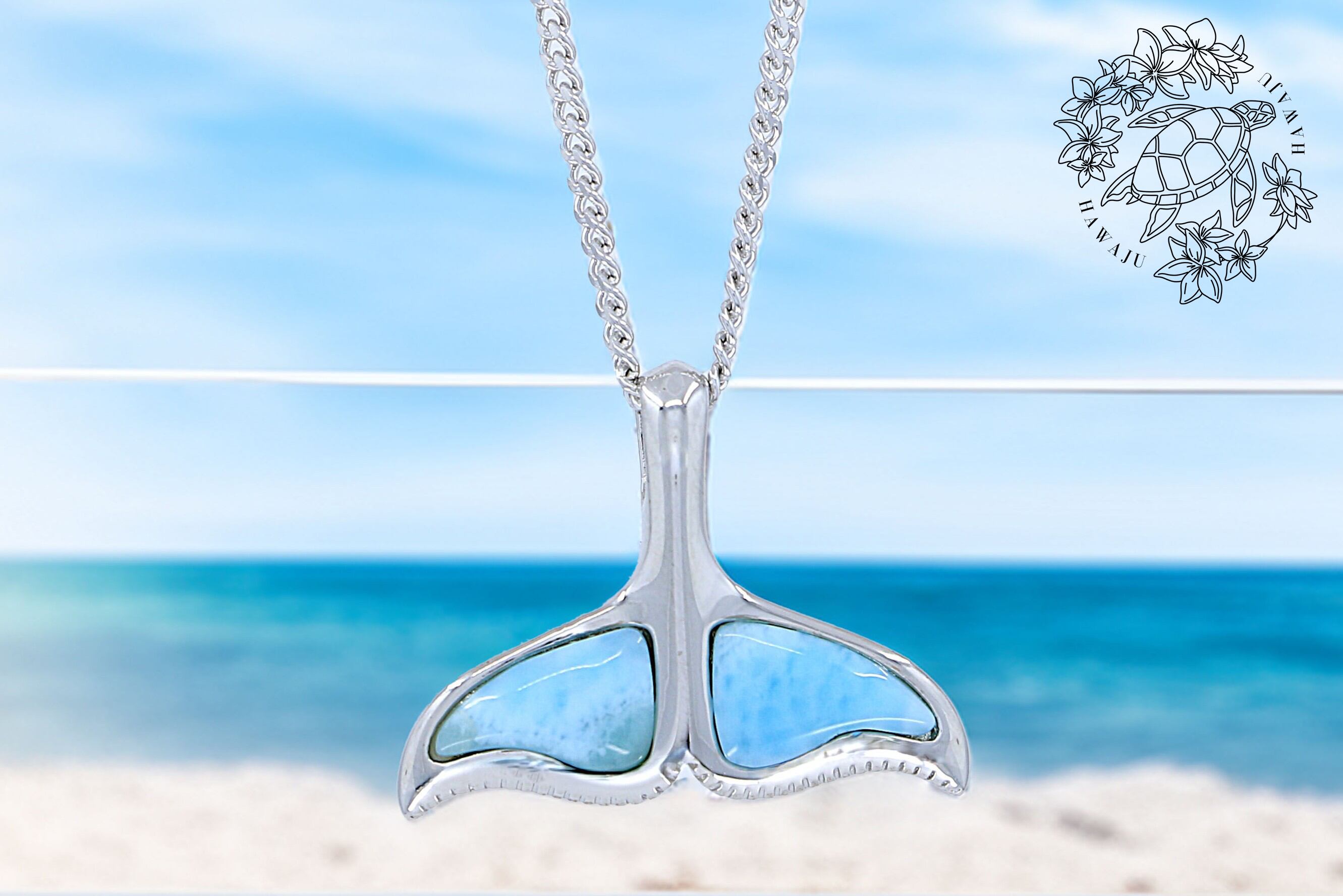 このペンダントトップは、ホエールテール(クジラの尾)デザインに、ラリマーをあしらった美しいハワイアンジュエリーです。シルバー素材で作られたペンダントは、シンプルながらもエレガントで洗練されたデザインが特徴。ラリマーの鮮やかなブルーが、クジラの尾のモチーフと見事に調和し、幻想的な美しさを際立たせます。ホエールテールは、ハワイ文化において「守護」や「自由」「航海の成功」を象徴するシンボルであり、このペンダントはその意味を込めて作られています。ラリマーの自然な美しさとシルバーの輝きが、あなたに癒しと幸運をもたらしてくれることでしょう。