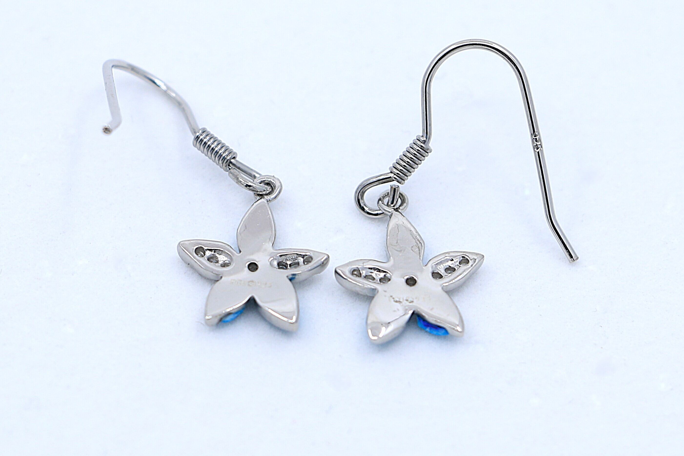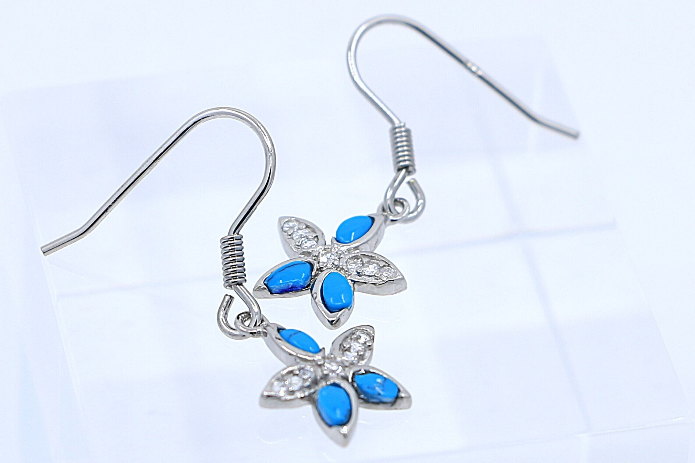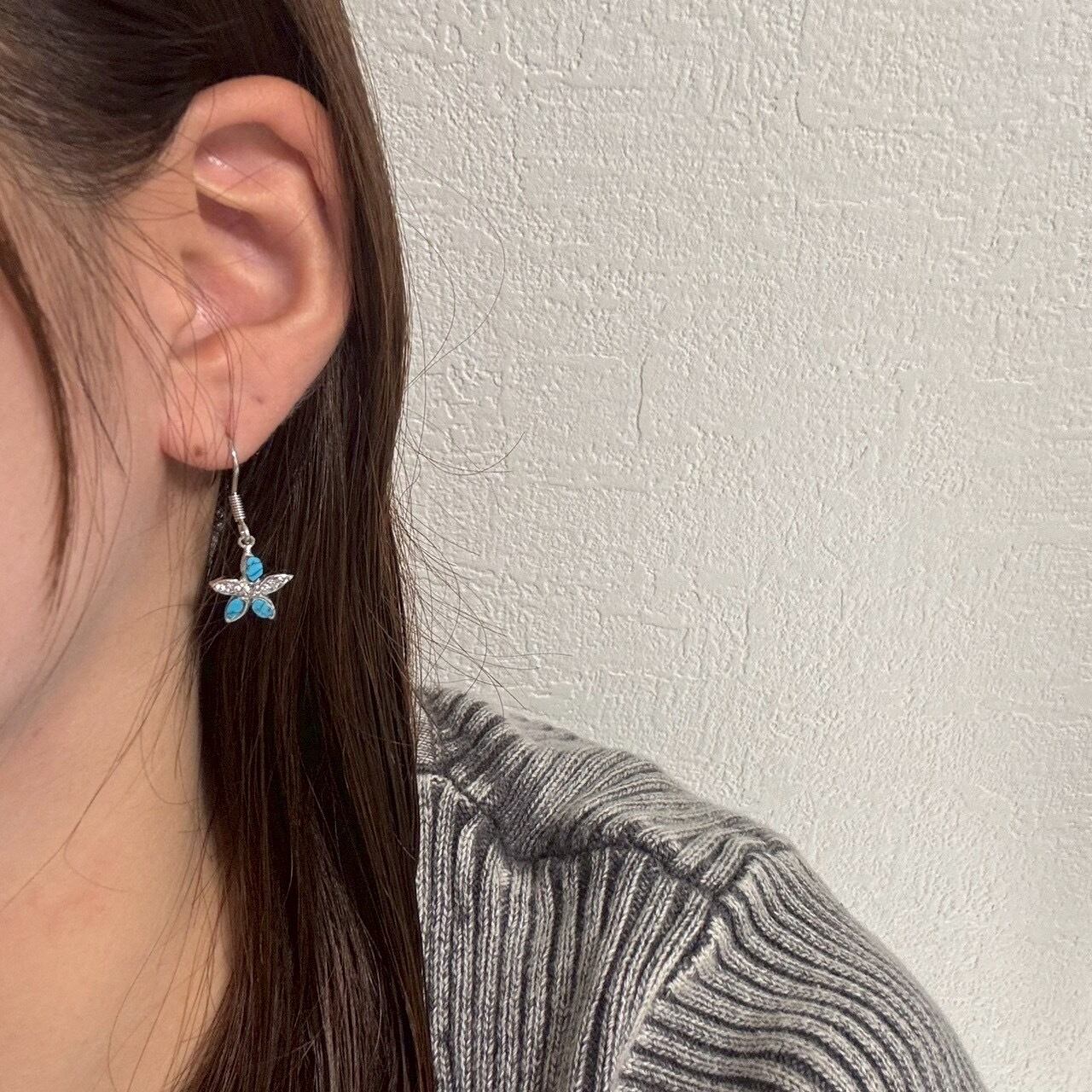 ハワイの自然の美しさと、心を癒す象徴的なデザインを凝縮した、プルメリアの花をモチーフにしたフックタイプのピアス。シルバー素材にブルーターコイズとキュービックジルコニアを贅沢にあしらい、華やかさと上品さを兼ね備えた逸品です。日常のコーディネートにぴったりでありながら、特別な日にもぴったりのアクセサリーです。