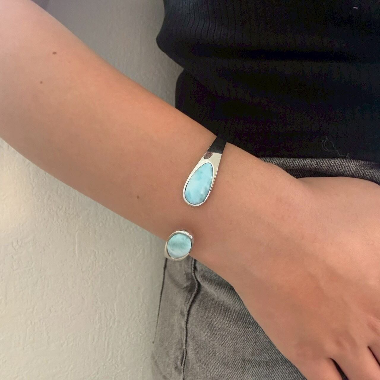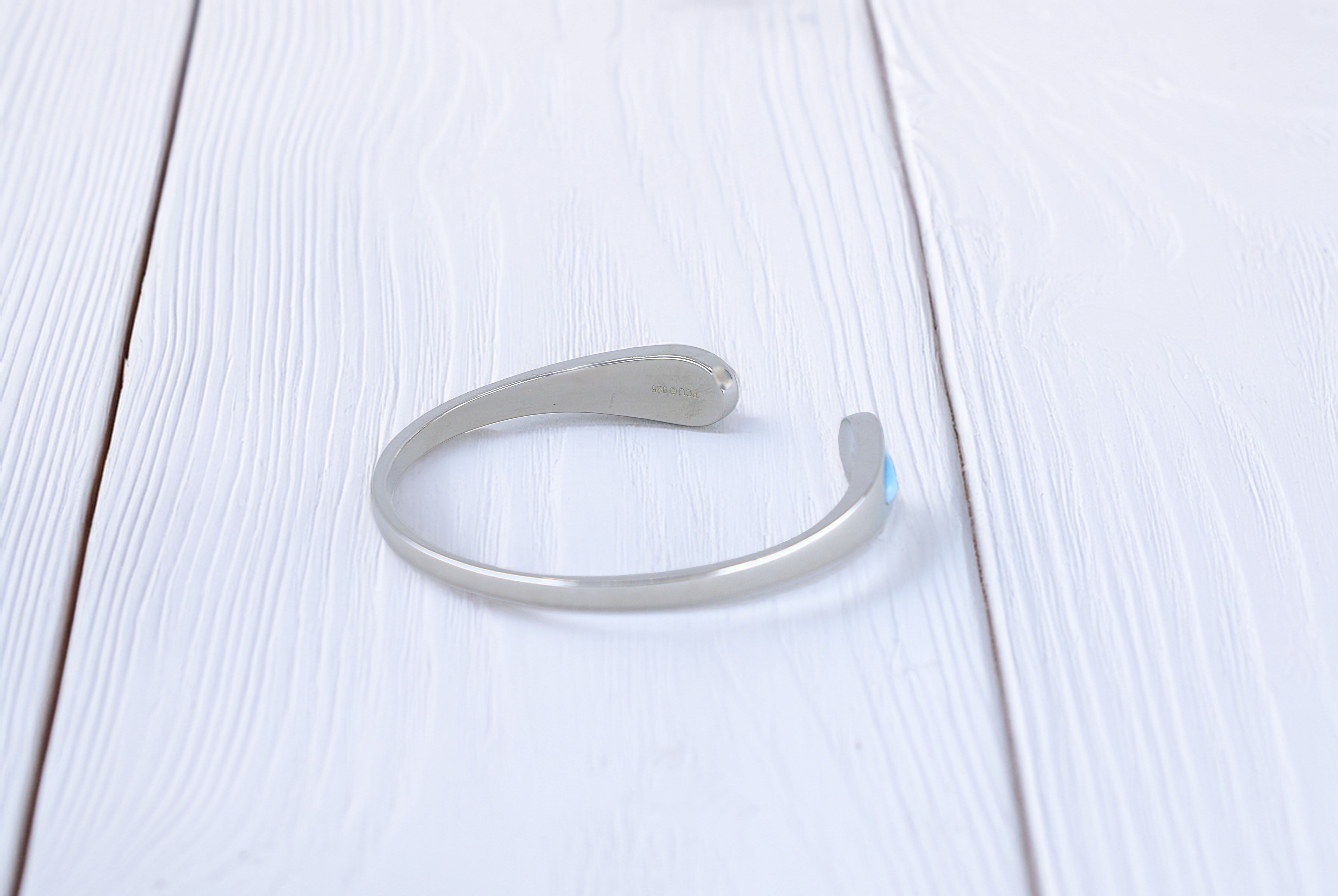 シルバー素材は、光沢感と耐久性を兼ね備えた優れた素材です。このバングルは、シルバーの洗練された輝きが、ラリマーの美しい色合いを引き立てます。シルバーは長く愛用できる素材であり、日常使いにも適しています。シンプルでありながらも上品な印象を与えるため、さまざまなシーンで活躍するアイテムです。