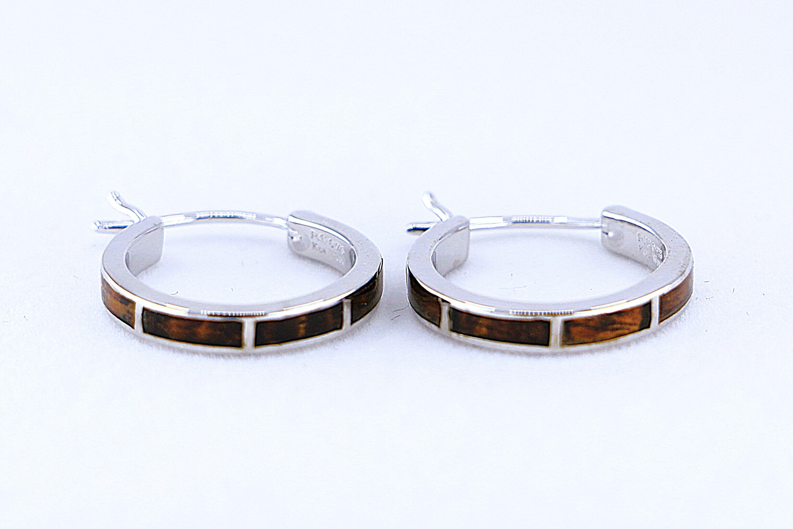 ハワイアンジュエリーの伝統美と自然素材の温もりを融合させた、細身のリングタイプのピアスで、ハワイ特有のコアウッドとシルバーの組み合わせが、上品かつ洗練された印象を与え、シンプルながらも耳元に華やかさを持たせる一品です。