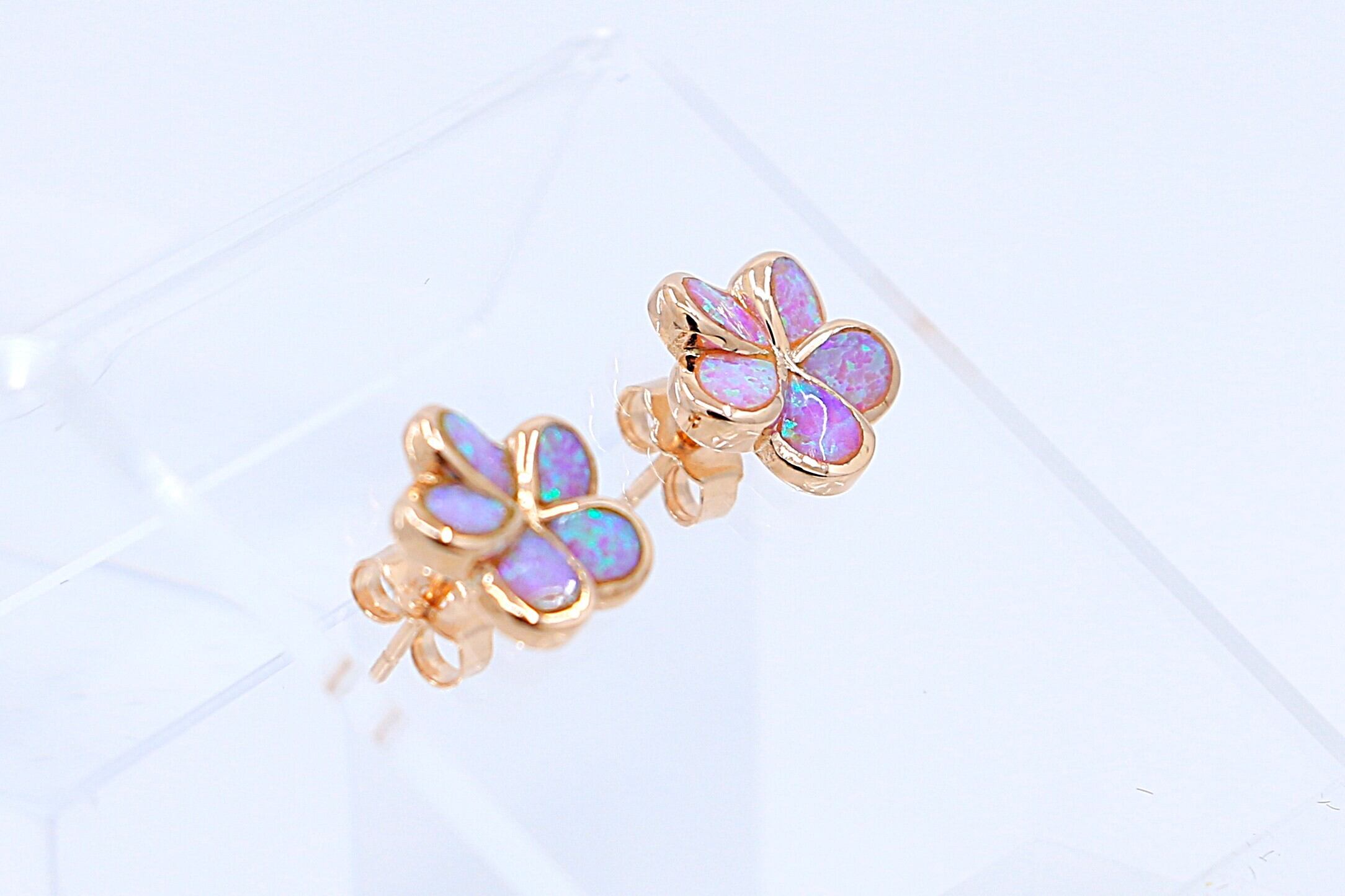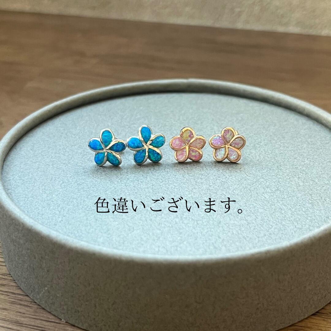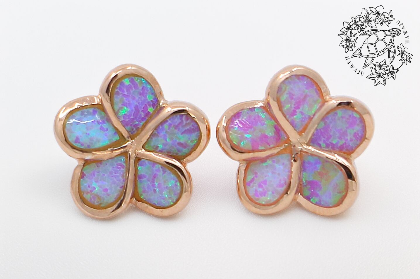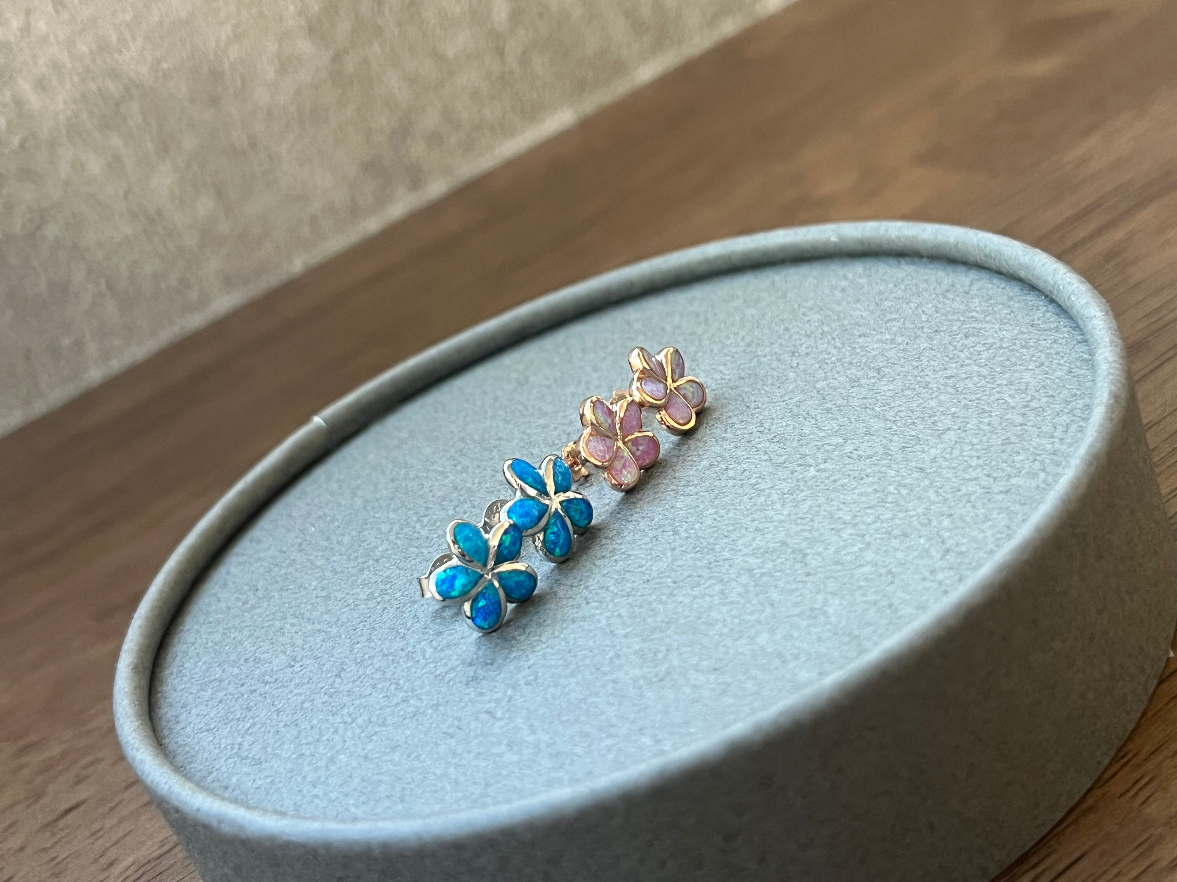 このピアスは、プルメリアの花がデザインされた、ポストタイプのピアスで、花弁にはピンクオパールが使用された、ピンクシルバー製のハワイアンジュエリーです。華やかで優雅なデザインが特徴で、特別な意味を込めたアイテムです。