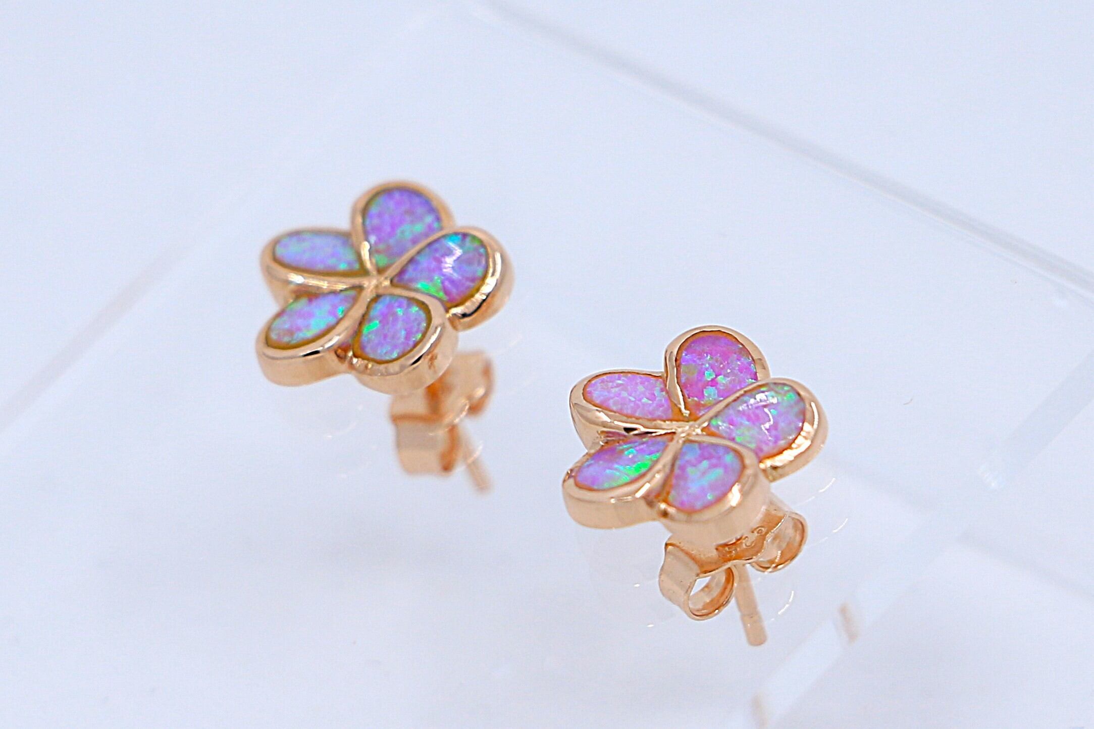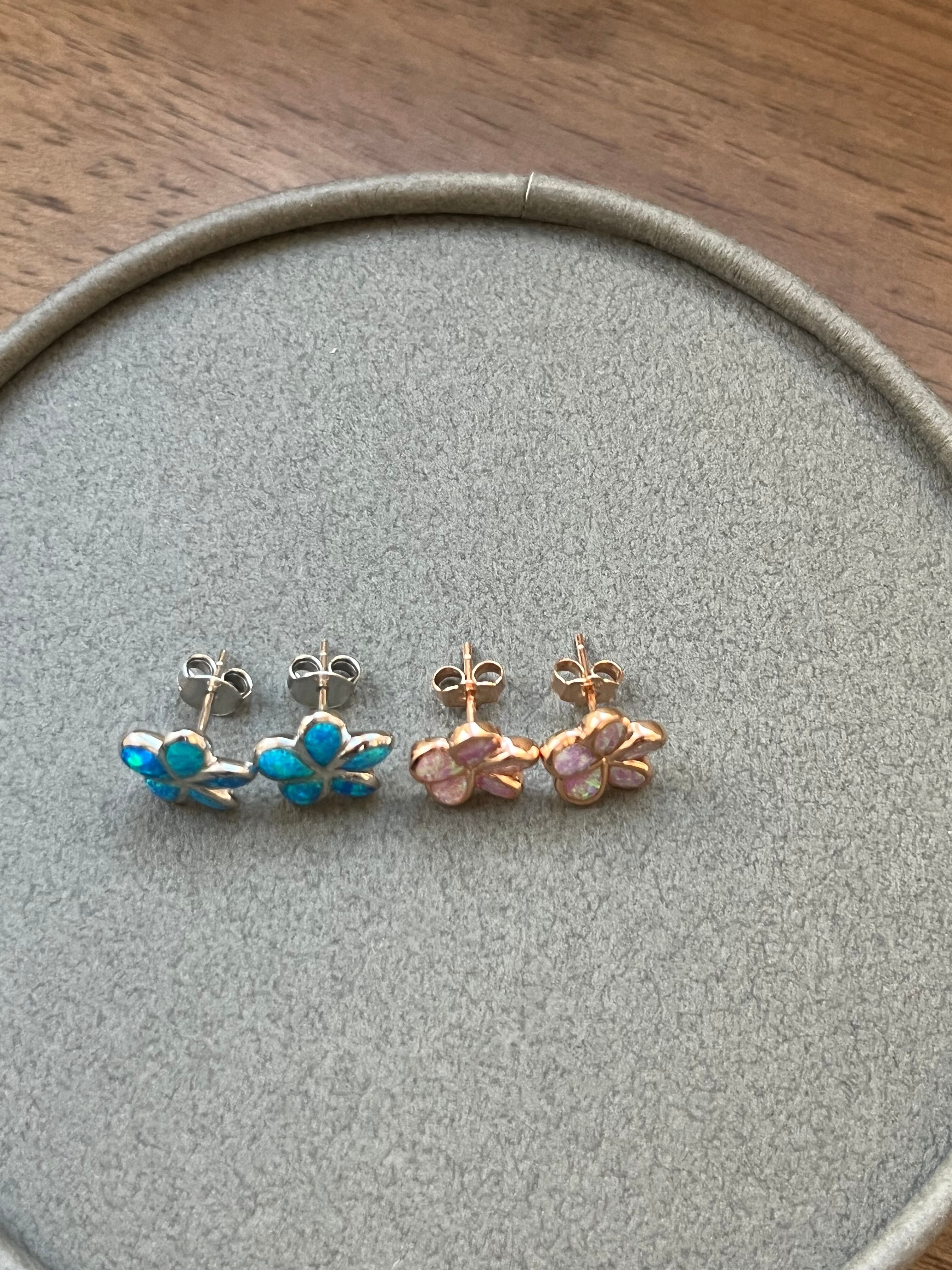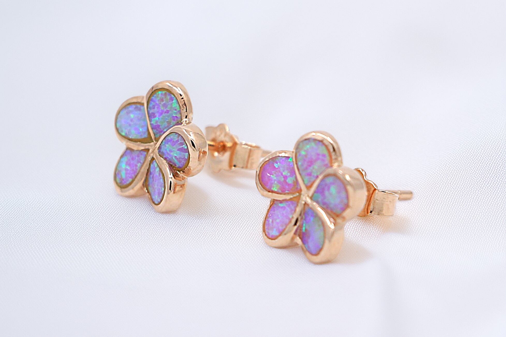 このピアスは、プルメリアの花がデザインされた、ポストタイプのピアスで、花弁にはピンクオパールが使用された、ピンクシルバー製のハワイアンジュエリーです。華やかで優雅なデザインが特徴で、特別な意味を込めたアイテムです。