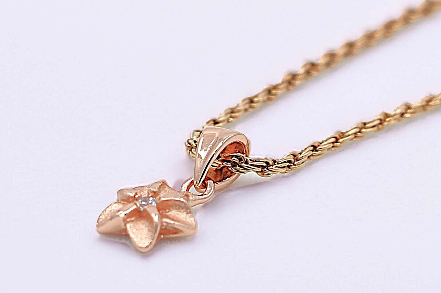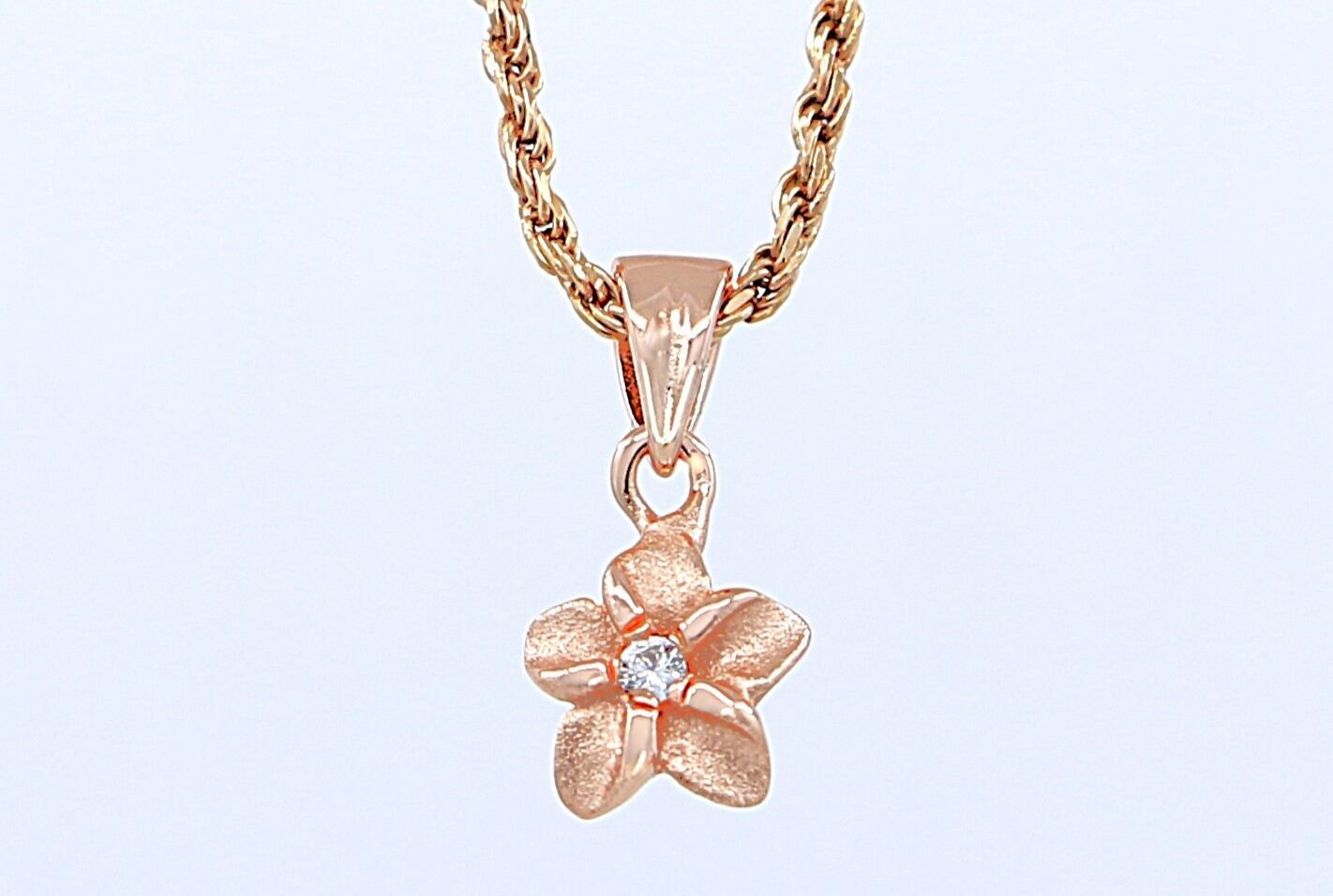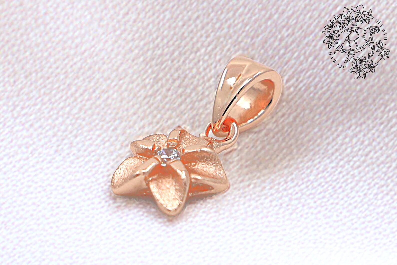 このプルメリアデザインのペンダントトップは、ハワイアンジュエリーの象徴的な美しさを纏った一品です。プルメリアの花はハワイの象徴として愛されており、キュービックジルコニアが花の中央に輝きを添え、さらにピンクゴールドシルバーの優雅な輝きが全体を引き立てます。シンプルでありながら、華やかで存在感があり、日常的にお使いいただける上品なアクセサリーです。