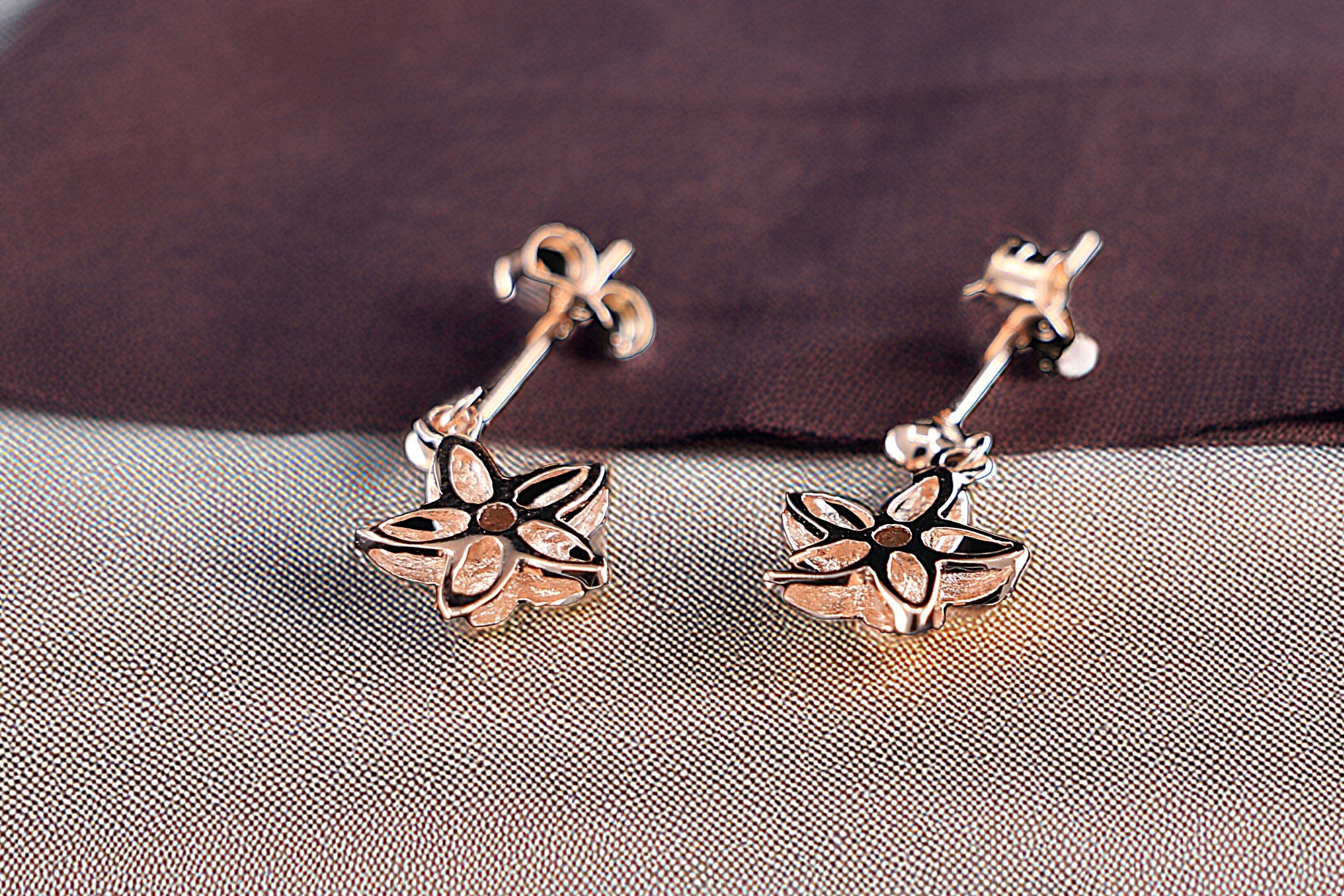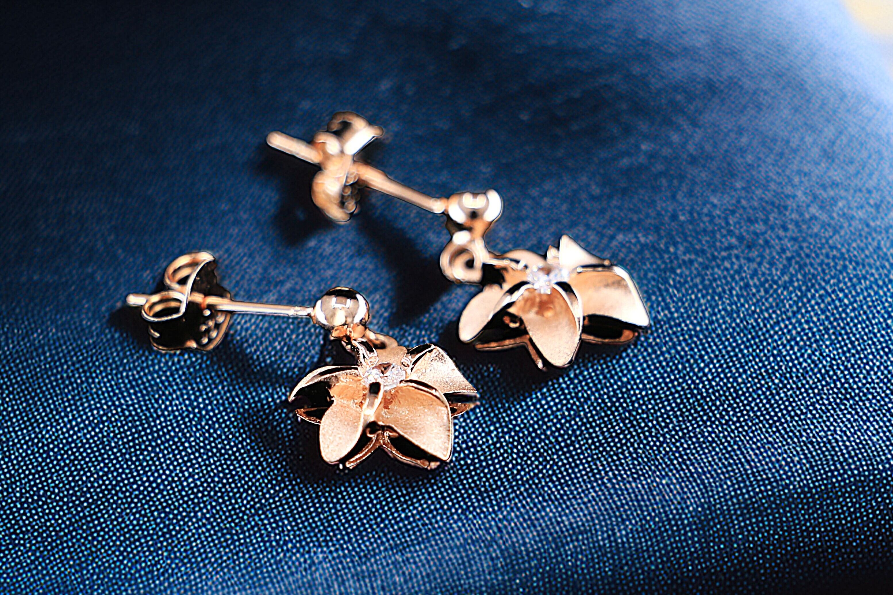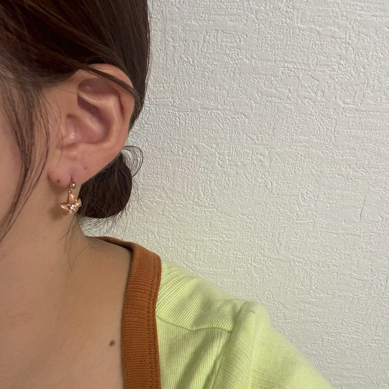 ピアスはピンクゴールドとシルバーのコンビネーションで仕上げられています。ピンクゴールドは温かみがあり、肌なじみが良く、優しく華やかな印象を与えます。